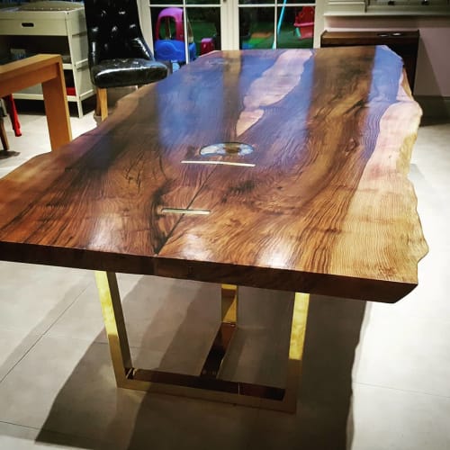 Natural Live Edge Walnut Table W Leviathan Gold Base