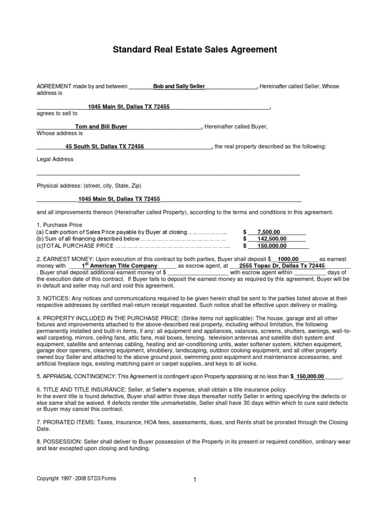 Home Seller S Re Sales Contract Filled In Example Pdf Promissory Note Mortgage Law